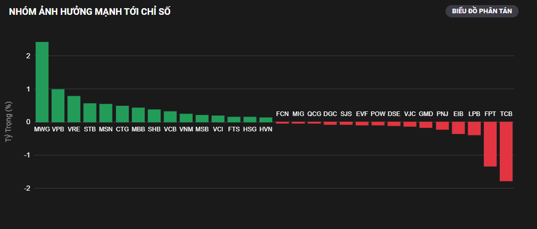 VNIndex tăng hơn 9 điểm ở phiên đầu tuần, đóng cửa ở mức 1,254 điểm. Nhóm cổ phiếu vốn hóa lớn đã hỗ trợ thị trường rất tốt trong phiên nay như: MWG, VPB, VRE, STB, MSN,…