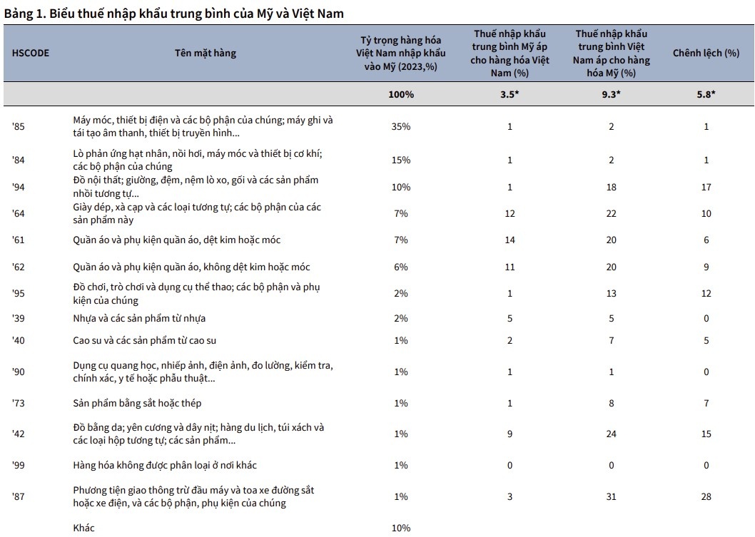 Thứ nhất, Việt Nam hiện đã phải chịu mức thuế quan cao hơn nhiều nước trong khu vực trên một số mặt hàng xuất khẩu.