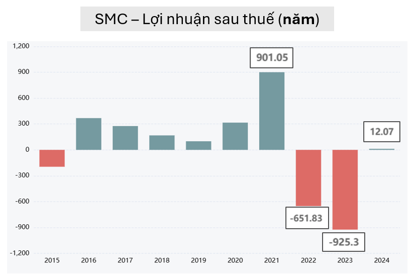 Điều này buộc SMC phải trích lập dự phòng các khoản phải thu khó đòi với giá trị rất lớn. Từ đó, gây nên các khoản lỗ nặng trong năm 2022 và 2023.
