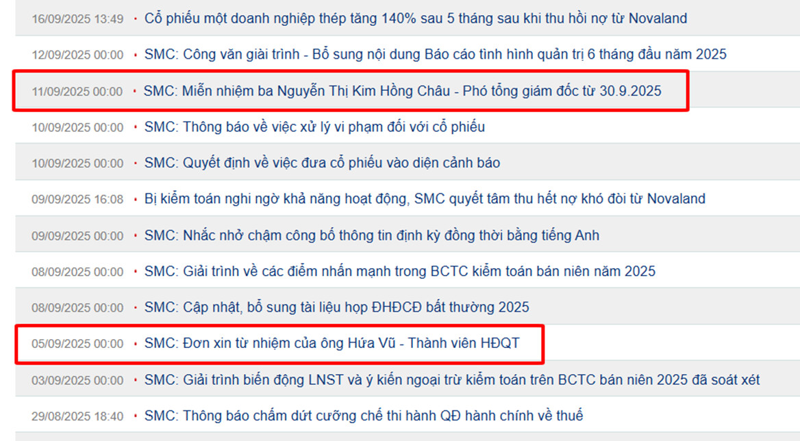 Thời gian vừa qua, các lãnh đạo của SMC cũng liên tục từ nhiệm, từ thành viên HĐQT đến phó tổng giám đốc