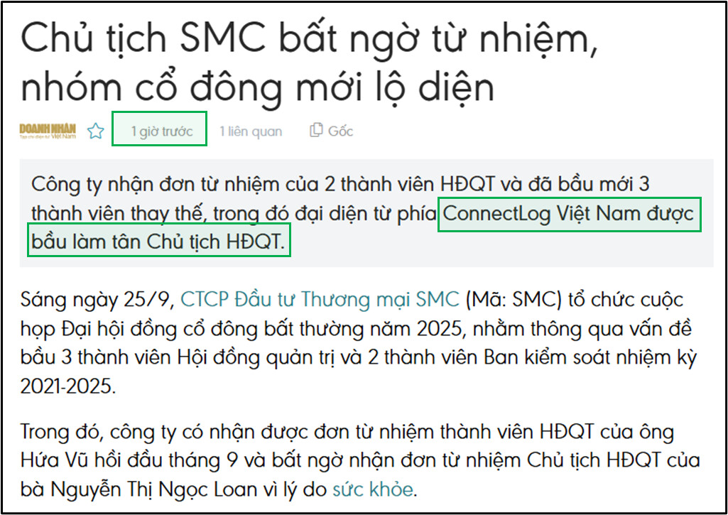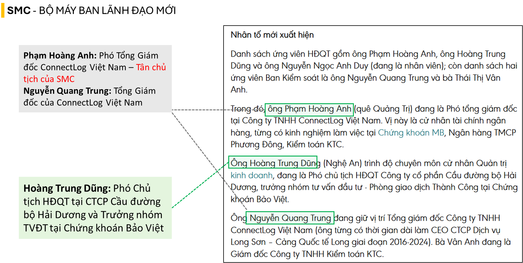 Việc Tổng Giám đốc cty ConnectLog Việt Nam trở thành Thành viên HĐQT, còn Phó tổng thành tân Chủ tịch SMC, có thể coi là thương vụ thâu tóm sát nhập SMC của Connectlog