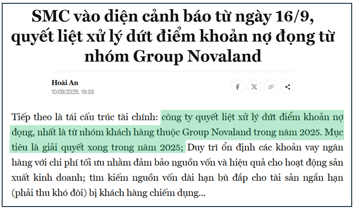 Vậy vấn đề công nợ với Tập đoàn Novaland chính là nguyên nhân trực tiếp và sâu xa nhất dẫn đến tình trạng khó khăn của SMC trong những năm gần đây.
