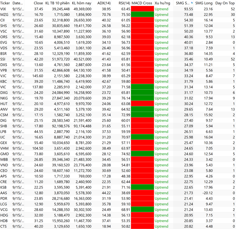 Top Cổ Phiếu Mạnh Trong Ngày 15/09/2025