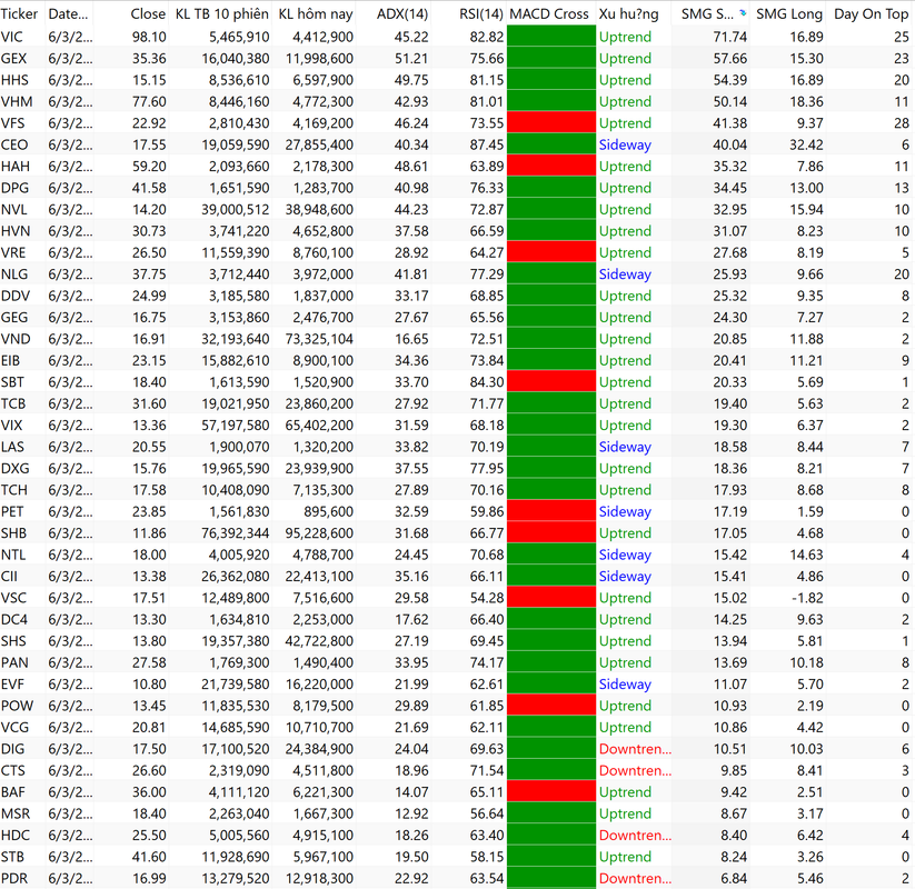 Top Cổ Phiếu Mạnh Trong Ngày 03/06/2025