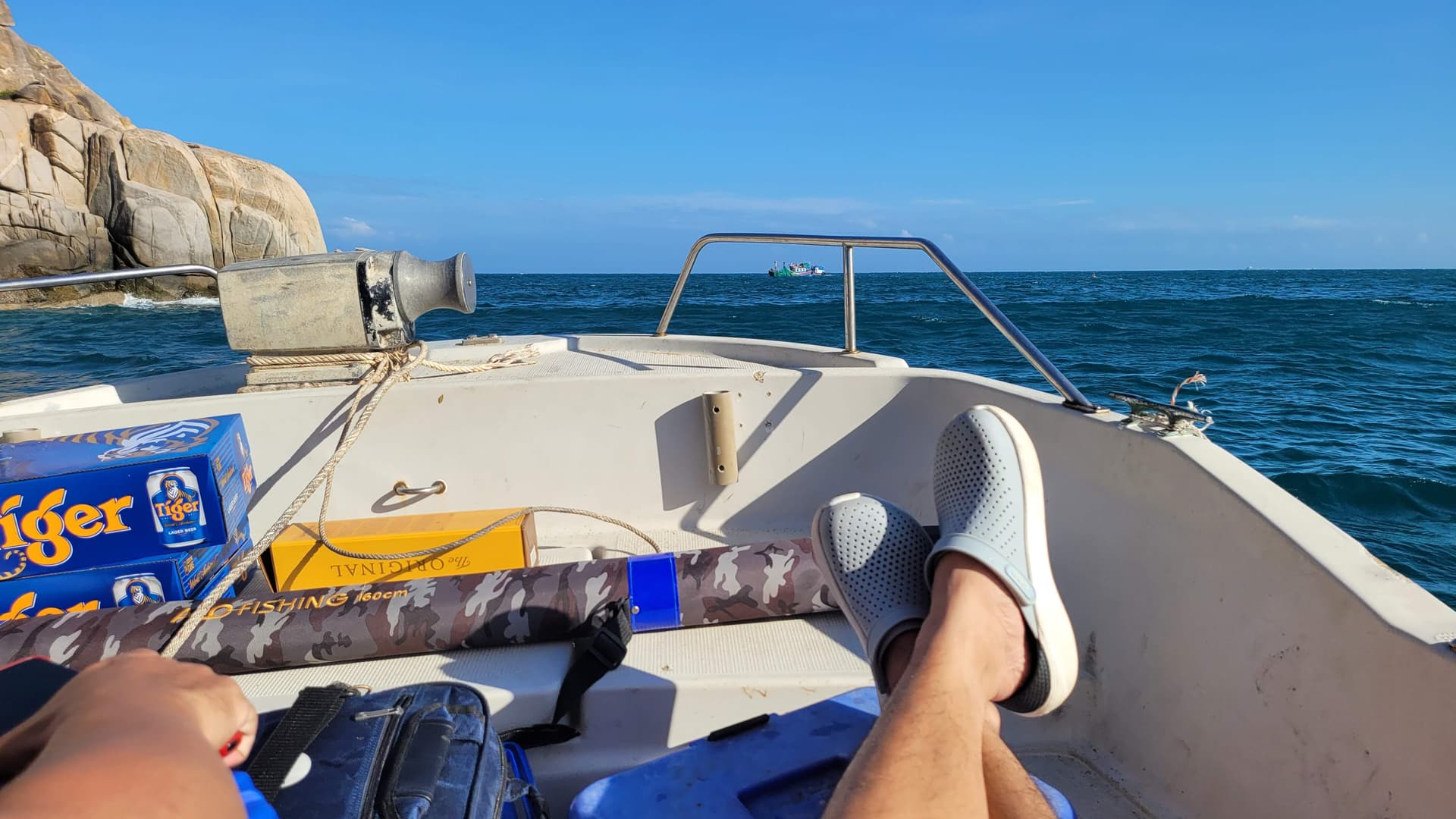 Đúng bài đó a… H thỉnh thoảng team building họ vẫn làm. Cho tàu ra xa chút, nhảy xuống bơi, quăng rịu xuống uống. H a đi thì có thể đi Phan Rang, Vịnh Vĩnh Hy đẹp lắm a ạ… Ngủ lại bè 1 đêm câu mực, quanh ta chả có thuyền bè nào, toàn xuồng cá nhái với vài tàu câu mực đêm. Đêm tĩnh mịch, ngồi chờ mực câu dc thả vào nồi, nhấm tí rịu lâng lâng cùng với cái dập dềnh biển cả… Sáng ngắm bình minh qua mõm núi nơi hang yến trú ngụ làm tổ… Thanh bình lắm thay!