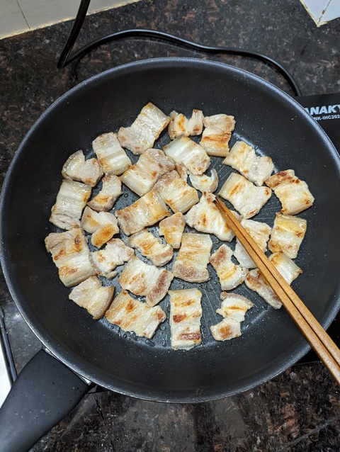 Chờ cái này ra mỡ xong giòn tí, vớt ra đĩa sốc tí muối tiêu… Làm nhắm bia dc… Nhưng… Ko có nhậu, đành thêm trái dừa và bỏ tôm vào thôi ![]()