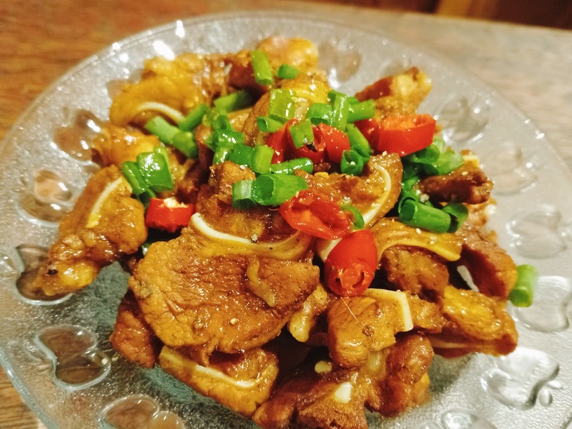 Sụn heo kho tiêu và rau muống luộc