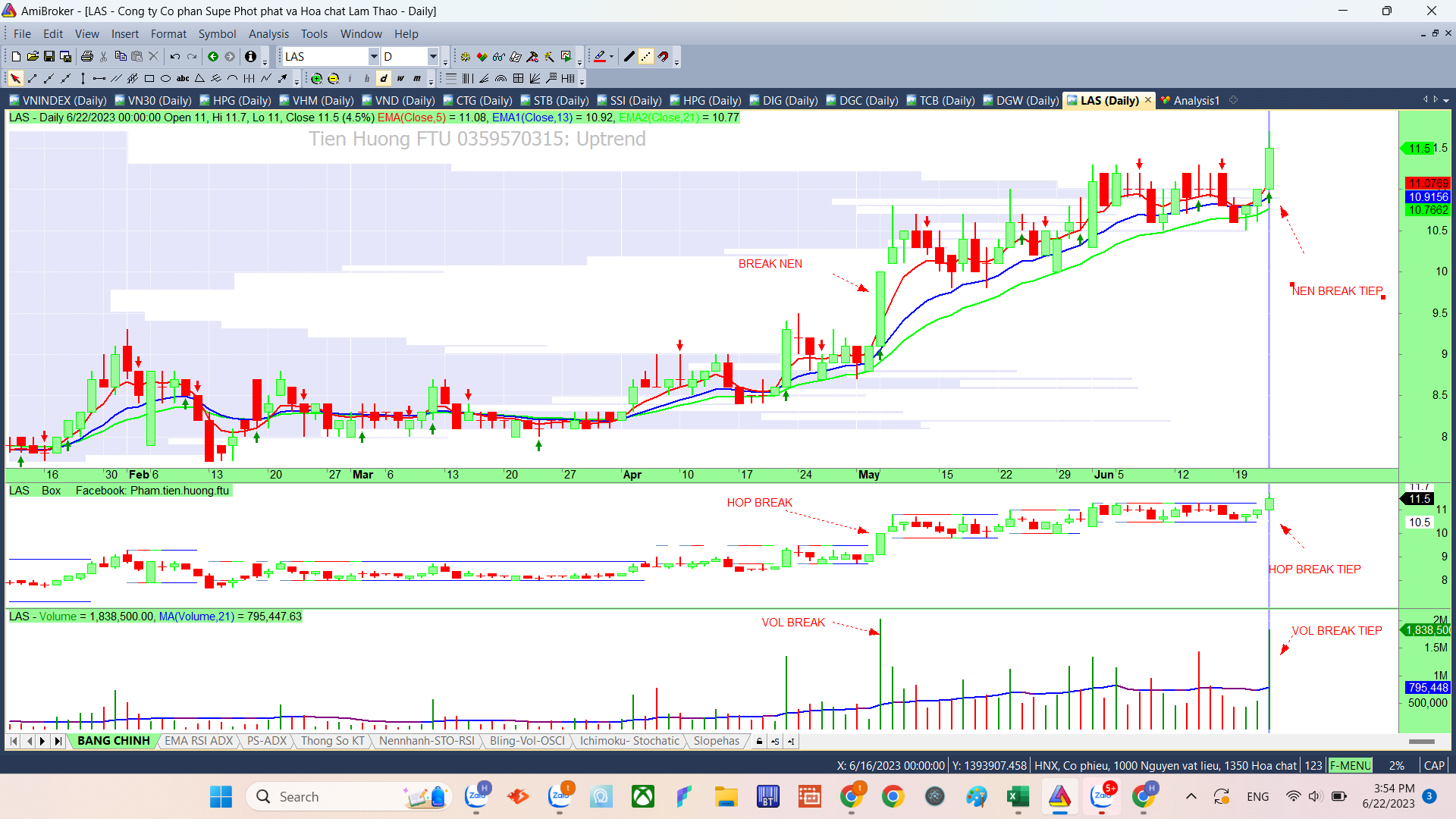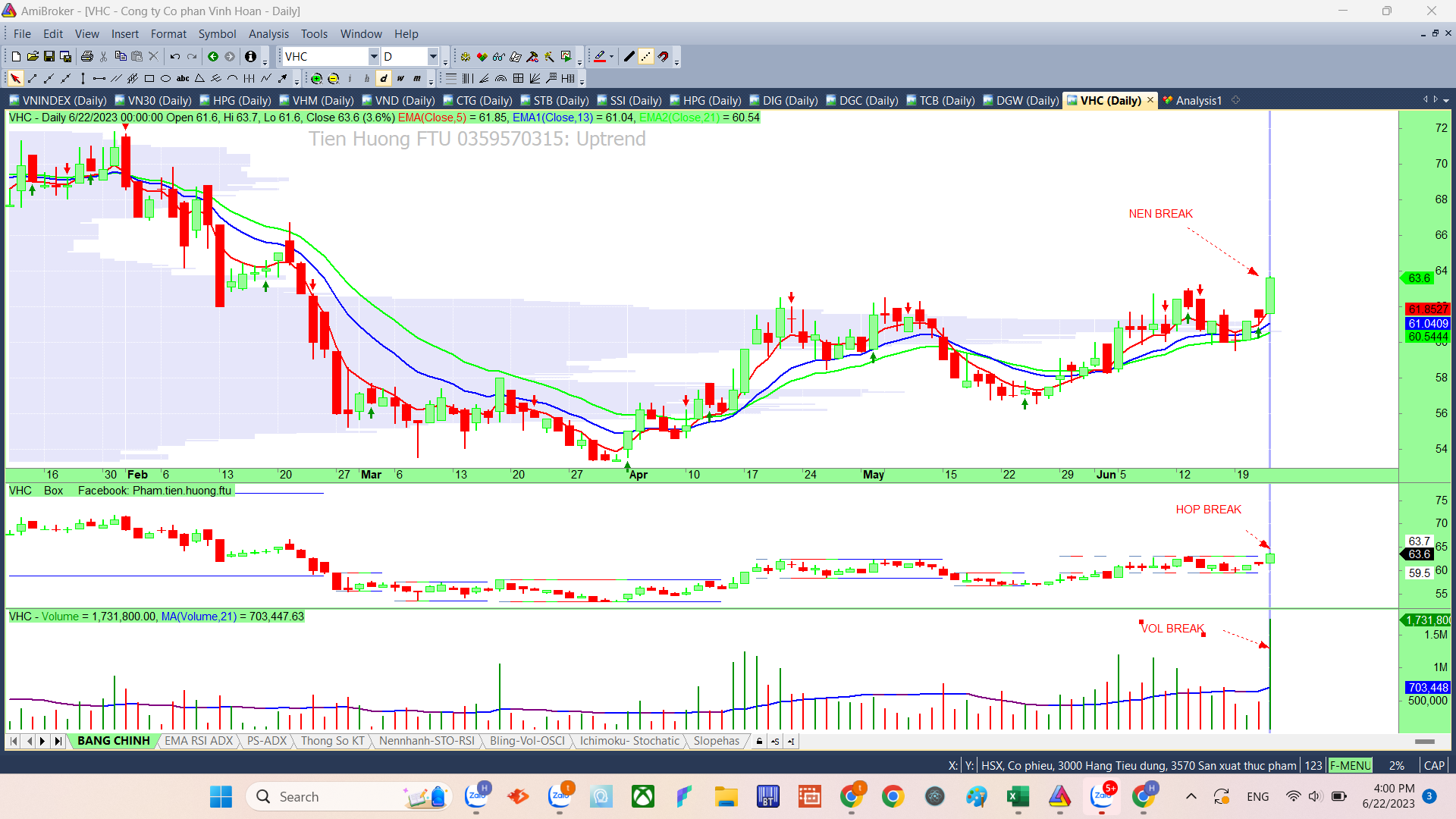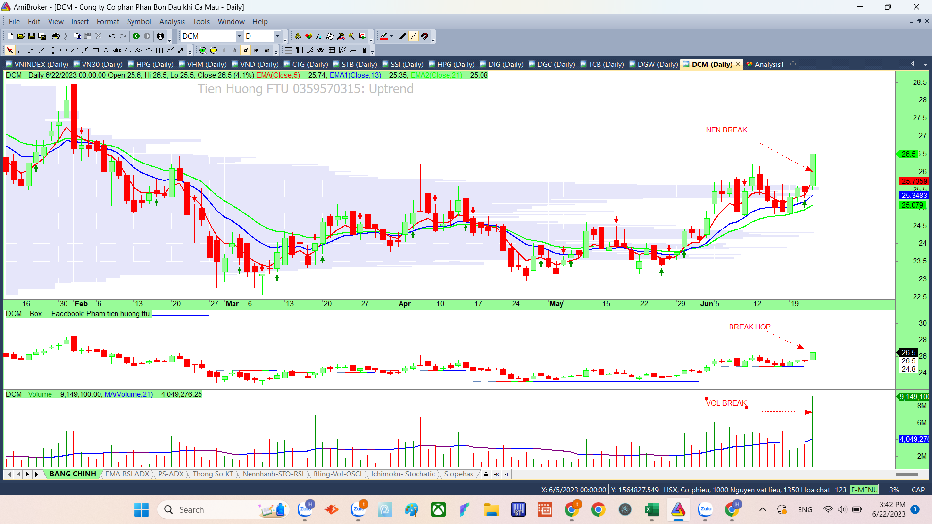 Dưới đây là 1 số cp break phiên 22.6 cũng như 1 vài cp đã mua và giữ quản trị.
