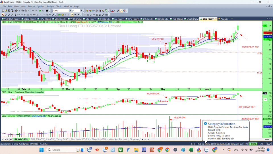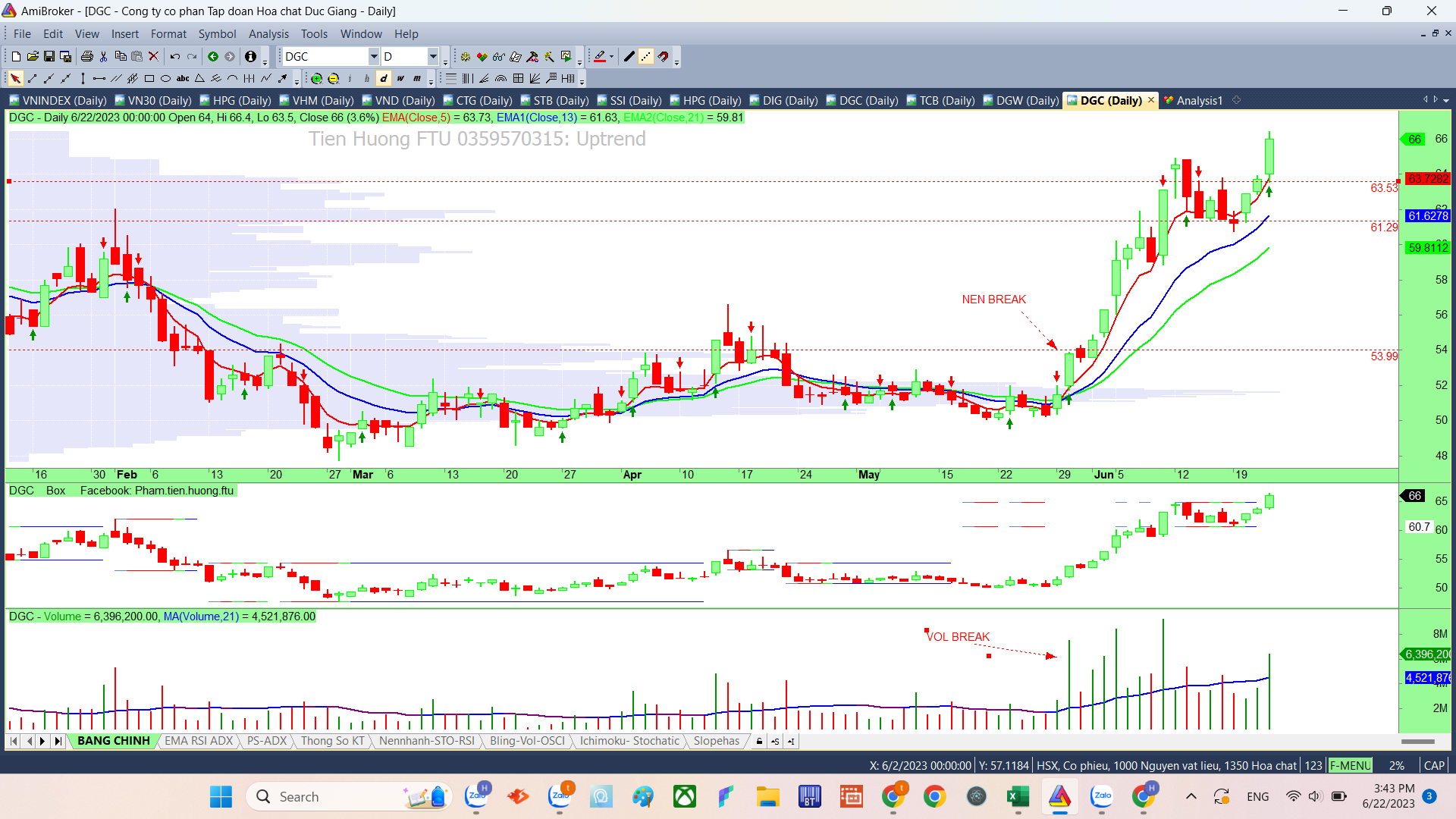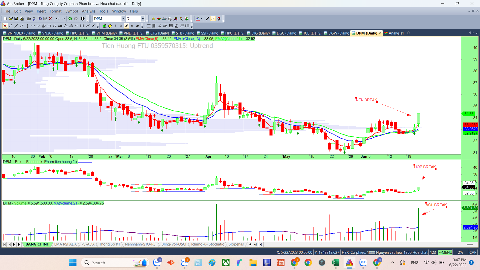 Dưới đây là 1 số cp break phiên 22.6 cũng như 1 vài cp đã mua và giữ quản trị.