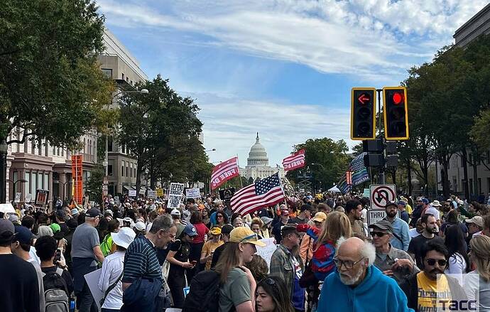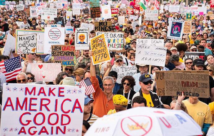 “Trong một trong những cuộc biểu tình toàn quốc lớn nhất trong một ngày trong lịch sử Hoa Kỳ, gần bảy triệu người Mỹ đã tập trung hôm nay, nhiều hơn 2 triệu người so với tháng 6, tại hơn 2.700 thành phố và thị trấn cho Ngày hành động hòa bình không có vua, cùng nhau đấu tranh bất bạo động chống lại chủ nghĩa độc tài và khẳng định rằng quốc gia này thuộc về người dân, không phải thuộc về vua chúa”, những người tổ chức cho biết trong một tuyên bố.