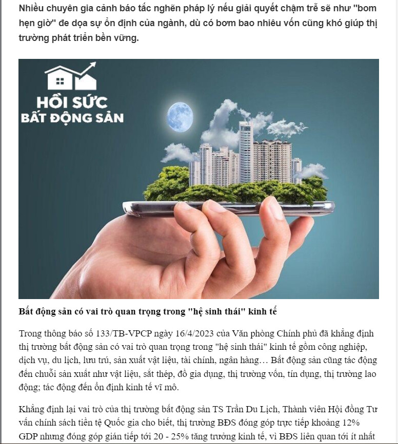Phải quyết tâm gỡ vướng cho BDS thì dân mới giàu nước mới mạnh