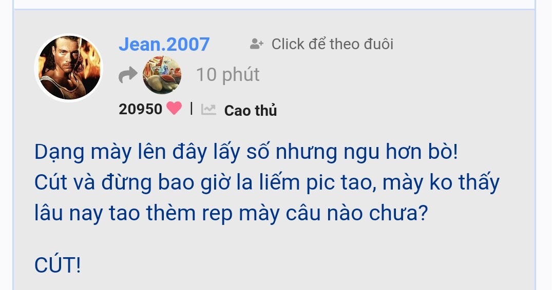 Cút và đừng bao giờ la liếm pic tao, mày ko thấy lâu nay tao thèm rep mày câu nào chưa?