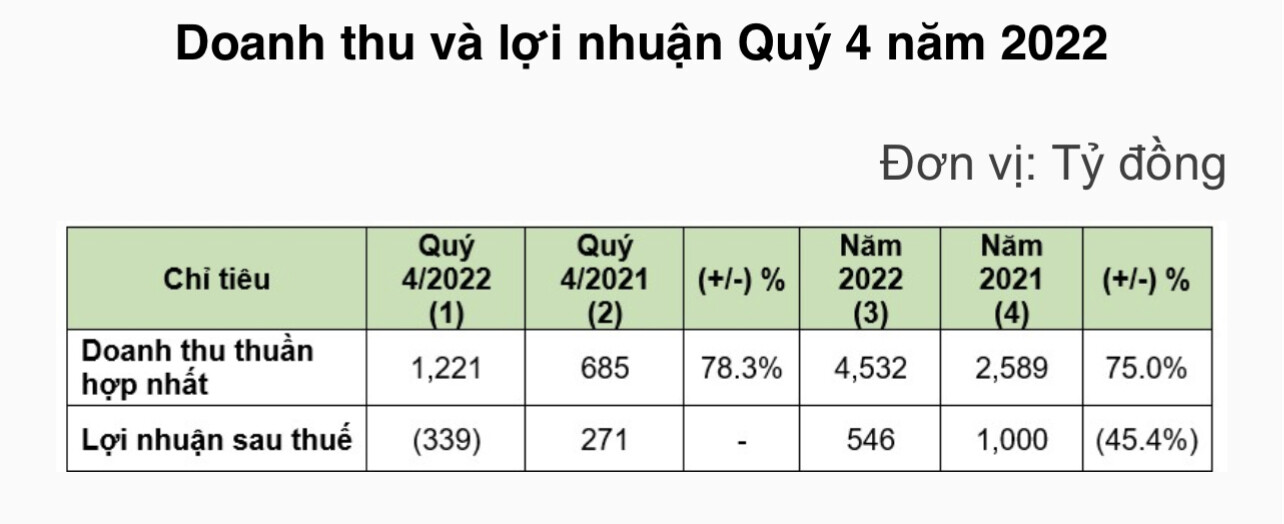 Quý 4/2022, Viglacera báo lãi gần 222 tỷ đồng, giảm 49,8% so với quý 4/2021. Lũy kế cả năm 2022, công ty ghi nhận lãi sau thuế 1.931,5 tỷ đồng, tăng 51% so với năm trước.