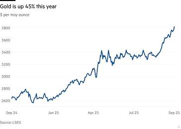 Kim loại quý này đang trong một đợt bứt phá mạnh mẽ, tăng tới 45% kể từ đầu năm. Đà tăng được thúc đẩy bởi lo ngại về mức nợ công khổng lồ, áp lực lạm phát kéo dài cũng như những nghi ngại xung quanh vị thế của USD trong vai trò đồng tiền dự trữ toàn cầu.