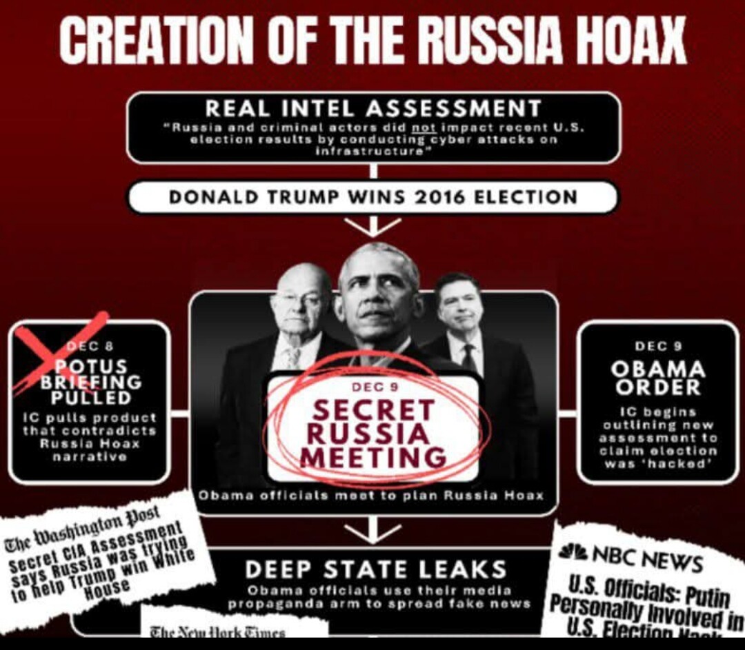Ngày 9 tháng 12 năm 2016, Obama triệu tập những người đứng đầu cơ quan tình báo hàng đầu của ông – gồm Brennan, Clapper, Comey, Lynch, Rice và một số người khác – đến Nhà Trắng. Mục tiêu không phải là bảo vệ đất nước. Mục tiêu là viết lại lịch sử. Họ chỉ đạo cộng đồng tình báo tạo ra một bản báo cáo mới, đổ lỗi cho Nga, bất chấp hàng tháng trời báo cáo cho thấy điều ngược lại. Đó không phải là tình báo. Đó là phá hoại.
