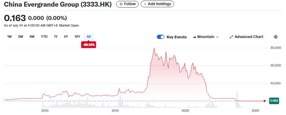 Evergrande là một trong nhiều nhà phát triển bất động sản sụp đổ sau khi Trung Quốc siết chặt hoạt động vay nợ trong ngành từ năm 2020. Không thể tiếp cận vốn vay, Evergrande không thể thực hiện nghĩa vụ tài chính với chủ nợ và khách hàng.