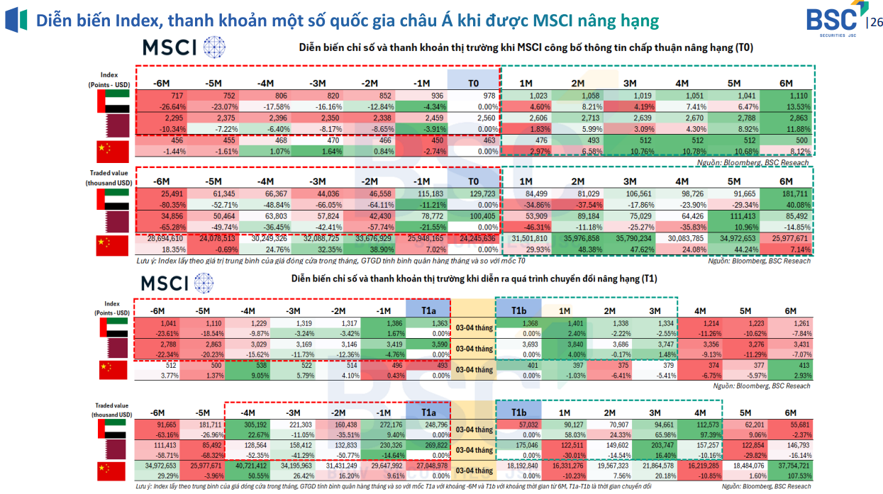 Diễn biến dòng vốn nước ngoài một số quốc gia châu Á khi được MSCI nâng hạng