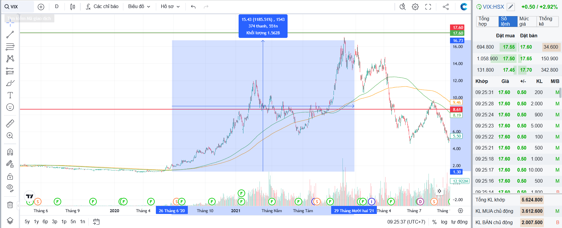 Nhịp tăng của VIX khả năng còn dài, uptrend trước tăng 12 lần rồi, kỳ này có tiền số + nâng hạng nữa thì cũng ngon đây