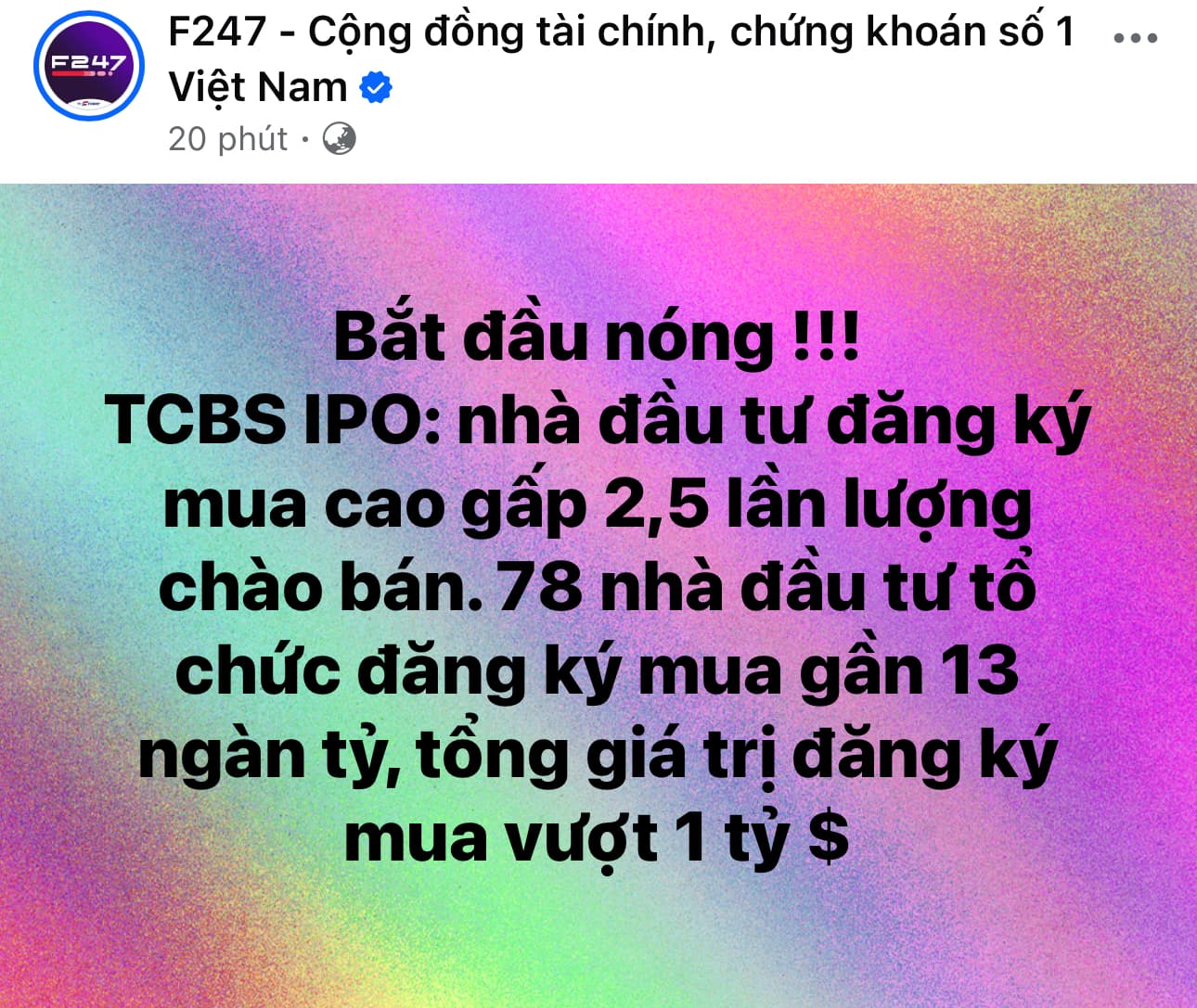 Tôi nói Ae nhiều lần rồi. Thị trường không thiếu tiền, tiền trong dân cực nhiều, miễn sao nhà phát hành có cổ phiếu thực sự tốt, chất lượng, uy tín và minh bạch thì không thiếu tiền để mua IPO. Cứ có sản phẩm tốt, uy tín và đủ niềm tin đưa ra Tt đi, nđt họ sẽ mua bằng hết ![]()
