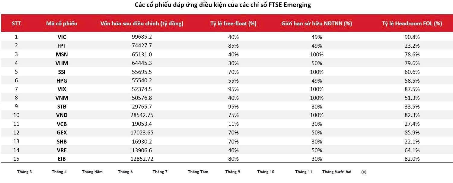 Các cổ phiếu sẽ được quỹ chủ động và quỹ thụ động ETF mua ròng vào thời gian tới khi được thông báo lên hạng từ 3-5 tỷ usd