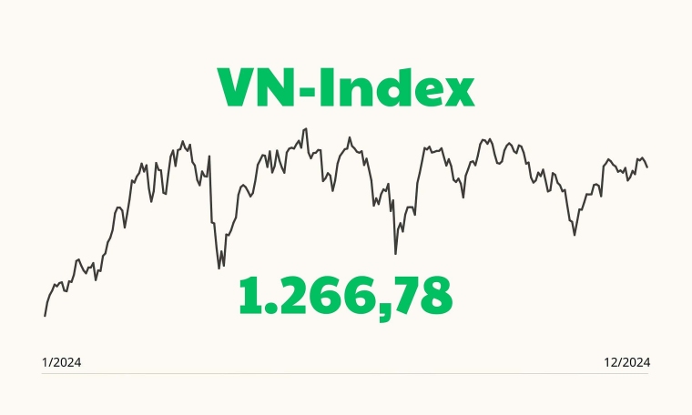VNI kết thúc năm 2024 với những nốt thăng ít trầm nhiều.