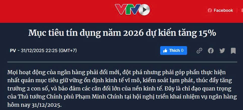 Lạm phát nhích lên, tỷ giá chịu áp lực tăng nhanh, và dư địa nới lỏng tiền tệ không còn dồi dào như trước. Vì vậy bước sang 2026, việc hạ mục tiêu tín dụng xuống 15% phản ánh sự thận trọng rõ ràng của chính sách tiền tệ . Không phải vì nền kinh tế yếu, mà vì đã bơm đủ mạnh trong năm trước và cần hãm nhịp lại để tránh rủi ro vĩ mô .