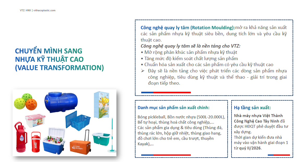 Trong làn sóng chuyển dịch sang nhựa kỹ thuật, bên cạnh các ông lớn đã định hình vị thế, thị trường bắt đầu xuất hiện những doanh nghiệp có sự chuẩn bị bài bản về hạ tầng sản xuất và công nghệ nhằm đón đầu chu kỳ tăng trưởng giai đoạn 2026-2030. Ở nhóm này, AAA là cái tên quen thuộc, trong khi VTZ (Nhựa Việt Thành) bắt đầu cho thấy nhiều tín hiệu đáng chú ý.