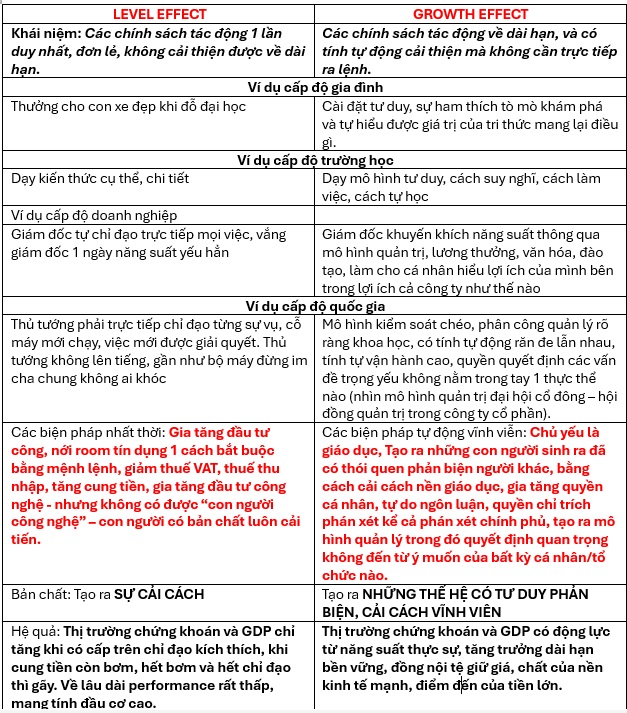 Công ty bạn làm, quốc gia bạn sống, chủ yếu là level effect, hay là growth effect ? Cổ phiếu bạn đang nắm có tăng trưởng lợi nhuận là level effect, hay đến từ growth effect ?
