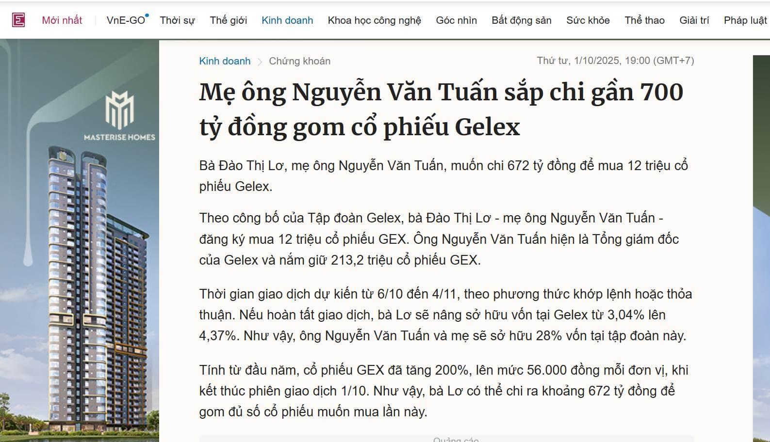 Cổ phiếu họ Gelex bơm tin tốt liên tục? Vix lãi gần 3000 tỷ quý 3 ? Người nhà mua 12 triệu cổ Gexlex ? Nhưng Giá không tăng được nữa thì chính xác tin ra là bán? Liệu có giống vụ người nhà mua 40 triệu cổ phiếu VPB?