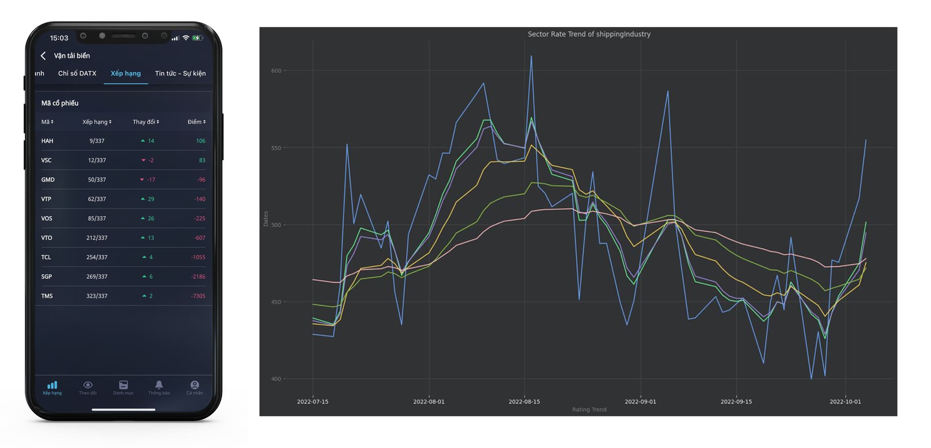 Vâng bác, hôm nay HAH tăng 14 hạng trên hệ thống DATX Rating, xu hướng ngành Vận Tải Biển duy trì trend tăng nên nhóm này có khả năng sẽ dẫn đầu trong đà hồi phục của thị trường bác ạ.