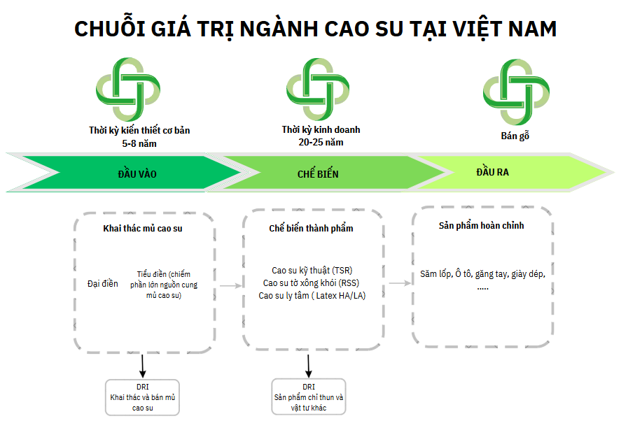 - Hiện nay, chuỗi giá trị ngành cao su tự nhiên tại Việt Nam có những điểm tương tự như ngành cao su tự nhiên trên thế giới, đầu vào đến chủ yếu từ thu hoạch mủ cao su từ vườn cây hoặc thu mua từ các vùng trồng cây (tiểu điền). Thị trường tiêu thụ chính của Việt Nam vẫn là Trung Quốc.