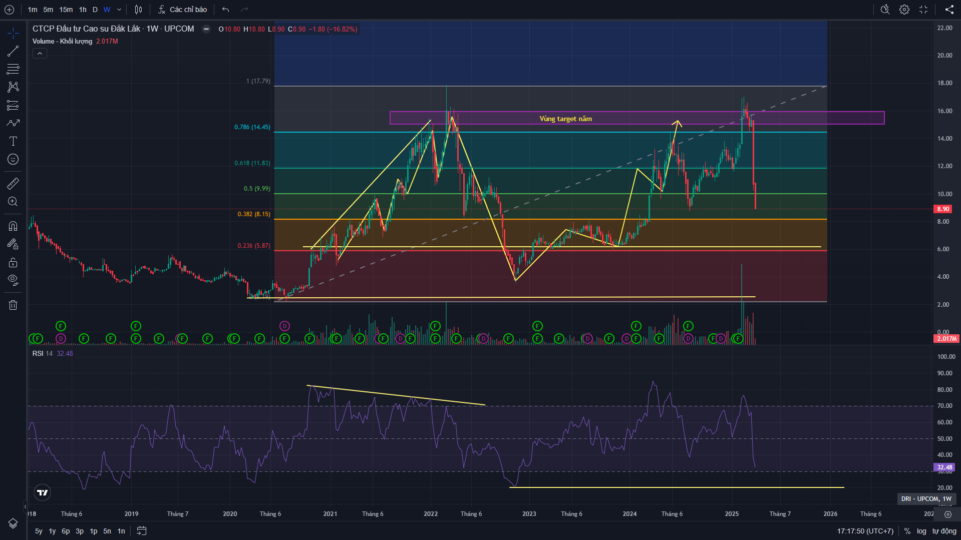 Đây là chart kĩ thuật DRI em vẽ hồi năm trước, mời cả nhà tham khảo: