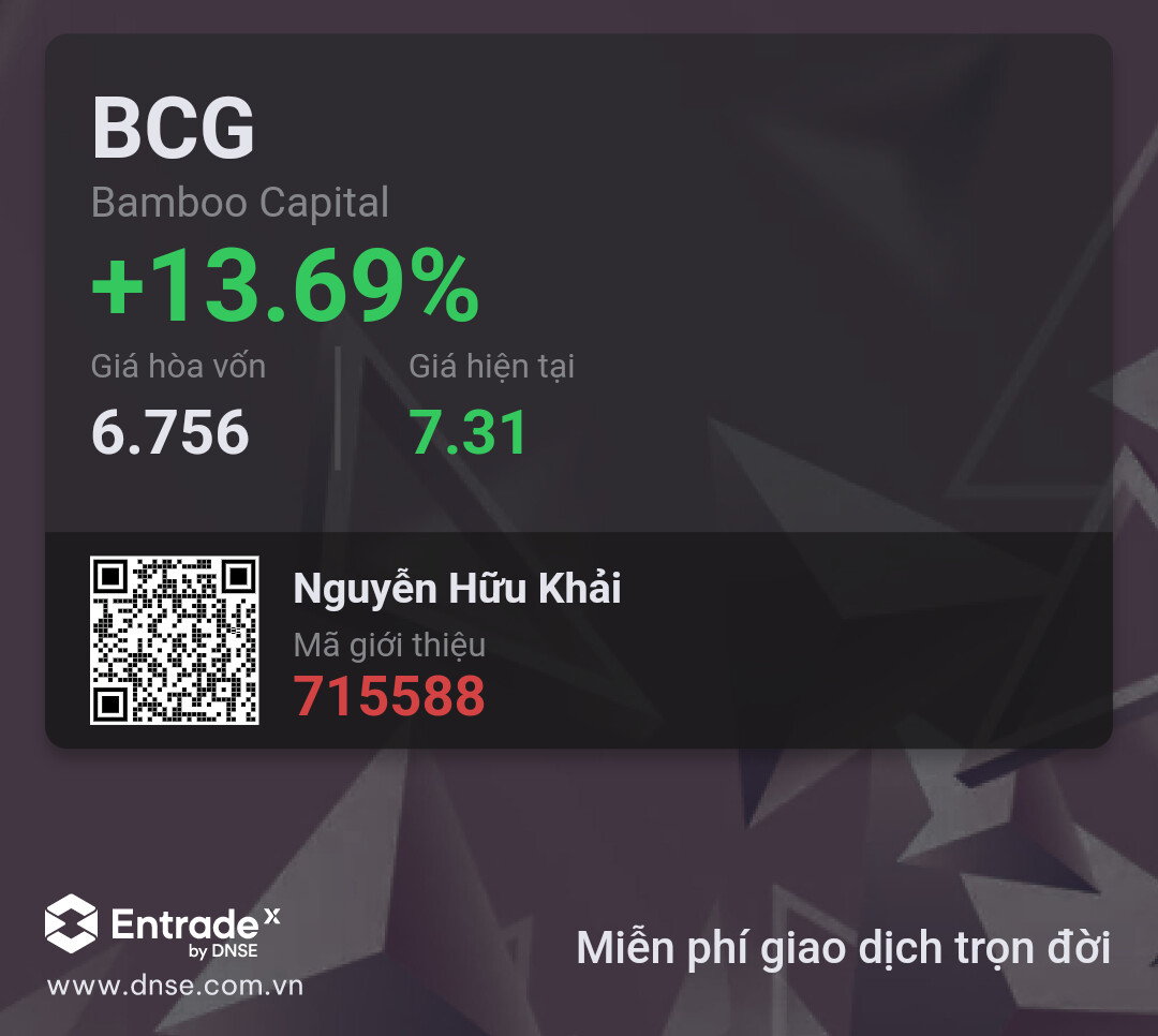 BCG nó phá kênh giá 3 phiên rồi. Giờ mới phát hiện ra. Người ta đã ăn 13%