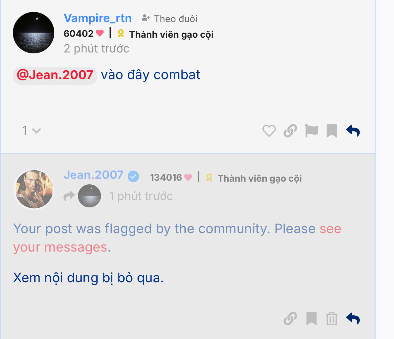 Lấy nic thật ra đi @Jean.2007 thì muốn combat vào đây Vam tui trả lời. xài nic phụ sợ bị mất tic xanh đi combat tôi k tiếp. cắm cờ