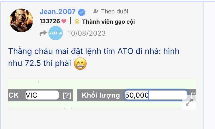 Hô ng ta đua ATO tím 72.5 50k cổ bên trên kìa. Giá đầy là đỉnh thời đại của VIC