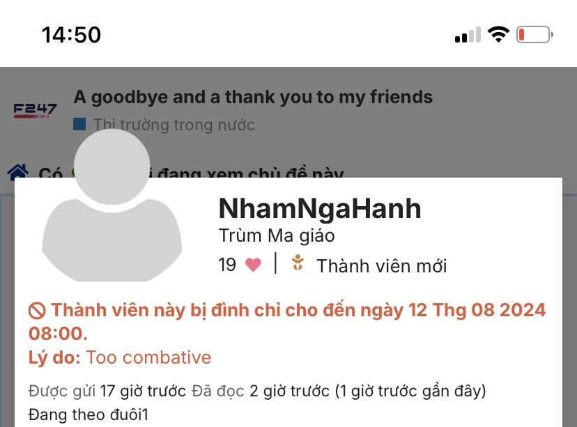 Mong Mod @SuperModerator có biện pháp xử lý dứt điểm các hành vi quấy rối, xúc phạm lời lẽ vô văn hoá, thoá mạ cá nhân… của 2 nick @NhamNgaHanh @MasterDua , gây bức bối phiền hà cho chủ topic và người đọc. Việc xoá comment không mang lại tính răn đe như mong muốn của ace.