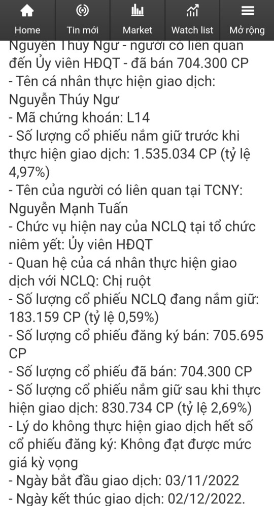 Cái thằng Thiên tân này bán thì bán cả luôn đi cho cổ đông yên tâm. Bán gần 4tr xong nghỉ lại bán hơn 2tr.