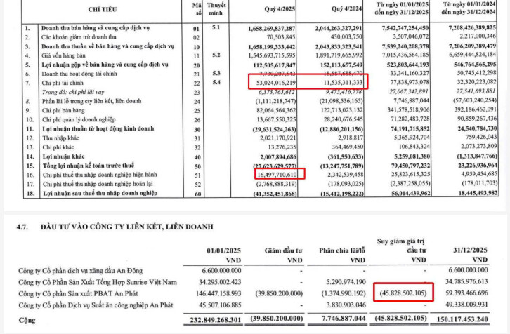 Công ty dùng thủ thuật kế toán đánh giá lại khoản đầu tư tài chính vào công ty PBAT để lòi ra chi phí tài chính tới ~ 45 tỷ để trông qua báo cáo có vẻ lỗ. Nhưng các chi phí tài chính này không được khấu trừ để tính thuế TNDN nên thực tế là công ty không lỗ và vẫn phải đóng thuế TNDN.