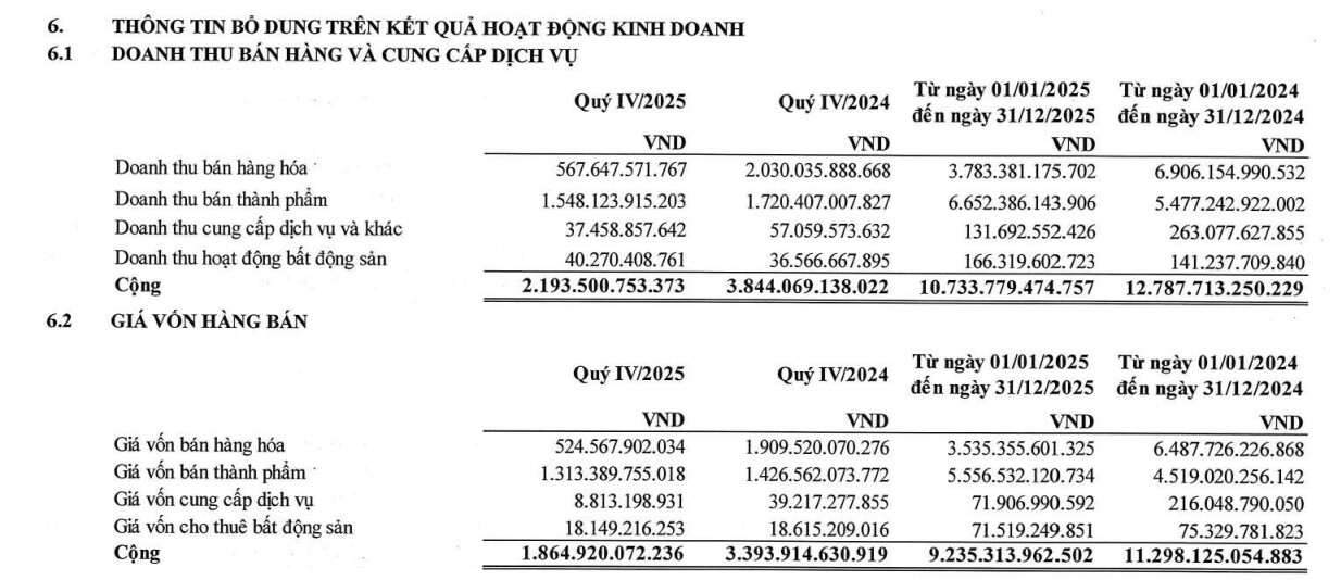 Cơ cấu doanh thu năm 2025: