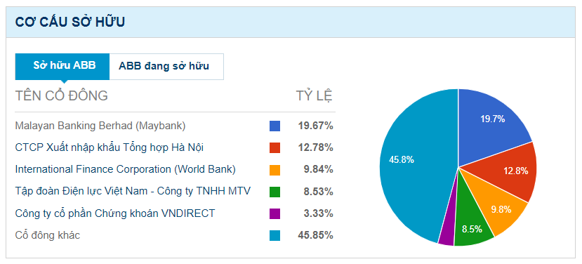 Về cơ cấu cổ đông lớn của ABBANK sau tăng vốn vẫn bao gồm Geleximco, Maybank, IFC. Trong đó, hai cổ đông lớn nước ngoài nắm giữ 24,59% cổ phần. Nhóm cổ đông lớn tiếp tục cam kết gắn bó, hỗ trợ ABBANK phát triển ổn định trong tương lai.