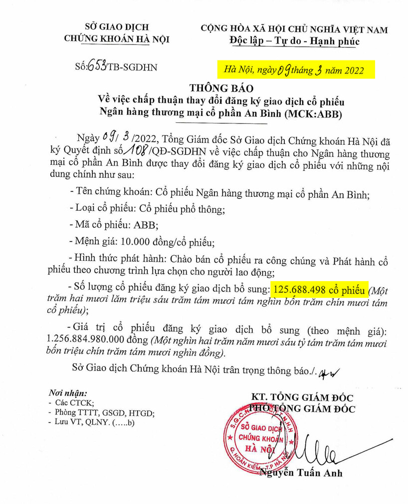 Cổ phiếu của ABBank sẽ được chuyển sàn niêm yết sau khi hoàn thành tăng vốn. Ảnh: ABBank.