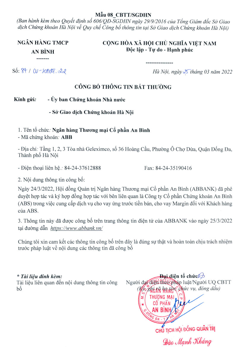 Kết thúc năm 2021 với nhiều biến động của nền kinh tế, bước sang năm 2022, hoạt động kinh doanh của ABBANK trong 2 tháng đầu năm vẫn đạt mức tăng trưởng dù chịu ảnh hưởng từ đại dịch. Theo báo cáo kết quả kinh doanh tính đến hết ngày 28/02/2022, tổng tài sản của ABBANK đạt 106.738 tỷ đồng, lợi nhuận trước thuế đạt 453 tỷ đồng, tăng 65% so với cùng kỳ năm 2021.