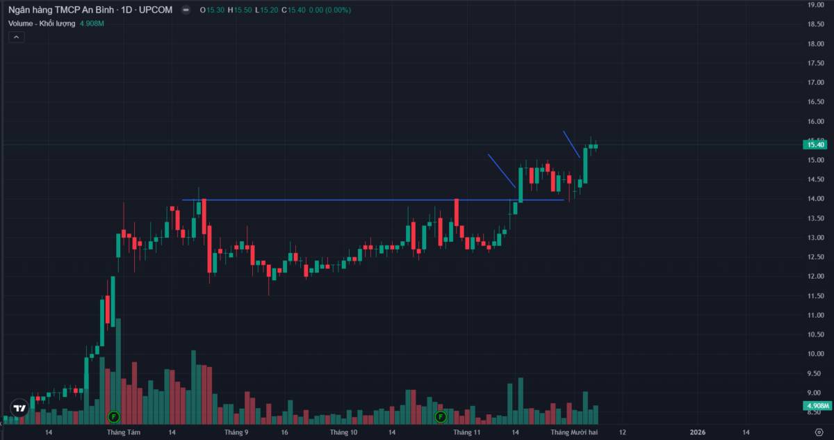 Trong khi nhiều mã ngân hàng khác còn đang loay hoay, ABB thể hiện sức bật tốt hơn và giữ giá chặt hơn 82% cổ phiếu trên thị trường. Đây là dáng dấp của một cổ phiếu Leader trong phân khúc Mid-cap Bank.