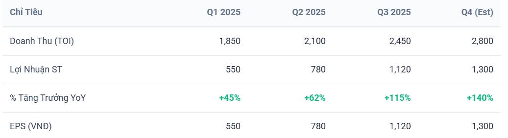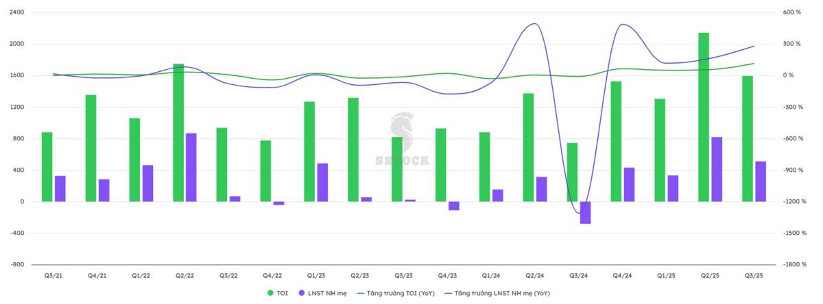 Điểm nhấn: Tốc độ tăng trưởng lợi nhuận đang bùng nổ 3 con số. Với mức lãi lũy kế 3.400 tỷ, lợi nhuận các quý cuối năm 2025 đang tăng trưởng cực mạnh so với nền thấp của 2024 (giai đoạn trích lập dự phòng nặng).