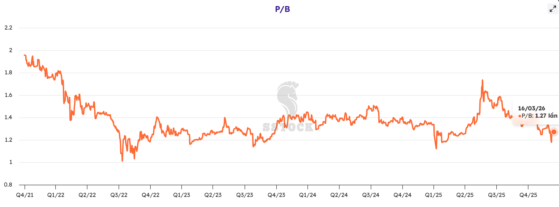 Ở góc độ định giá, ACB hiện đang giao dịch tại mức P/B khoảng 1,27 lần, thấp hơn mức trung bình 5 năm là 1,46 lần. Điều này cho thấy thị trường vẫn đang định giá cổ phiếu ở mức tương đối thận trọng, trong khi nền tảng cơ bản của ngân hàng vẫn được xem là ổn định. Nếu ACB duy trì được tốc độ tăng trưởng lợi nhuận, kiểm soát tốt chất lượng tài sản và tiếp tục tối ưu hiệu quả sử dụng vốn sau đợt tăng vốn sắp tới, dư địa đánh giá lại định giá trong trung hạn vẫn còn.