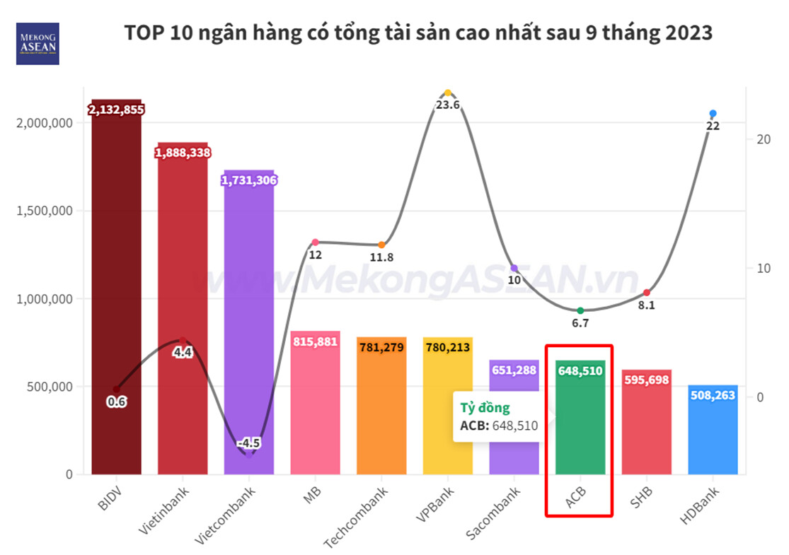 Kết thúc năm 2011, tổng tài sản của ACB đạt hơn 280.000 tỷ đồng, trở thành ngân hàng tư nhân có quy mô lớn nhất thị trường