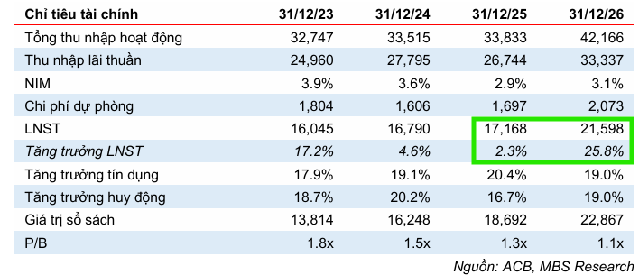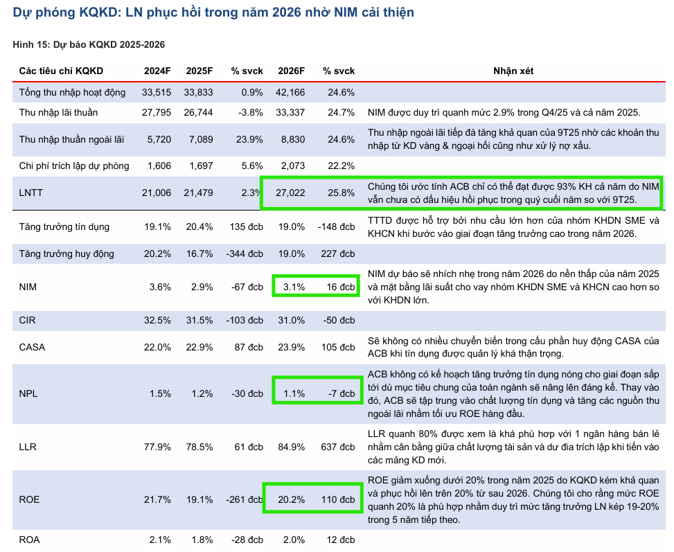 Cả hai bài viết đều đồng thuận rằng Tỷ lệ Thu nhập Lãi thuần (NIM) của ACB đang chịu áp lực và đã giảm về vùng 2.9% - 2.97%. Tuy nhiên, đây được xem là vùng đáy của chu kỳ. Các dự báo đều chỉ ra rằng NIM sẽ bắt đầu quá trình phục hồi từ cuối năm 2025 và trở nên rõ rệt vào năm 2026 (dự kiến đạt 3.1%). Các yếu tố hỗ trợ bao gồm: