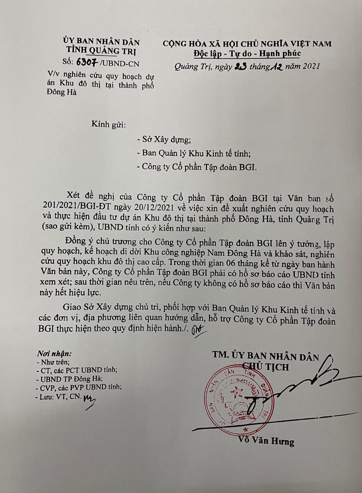 BGI Group được phê duyệt chủ trương nghiên cứu đầu tư dự án: Khu đô thị Nam Đông Hà – tỉnh Quảng Trị
