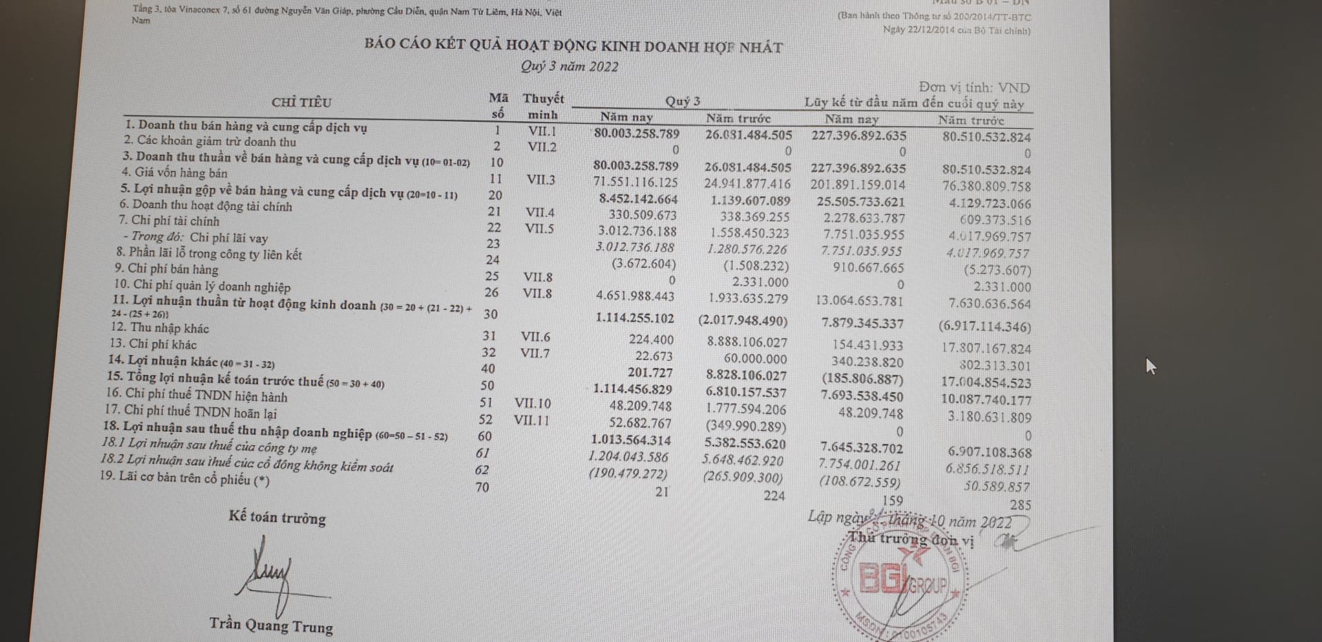 B cho xin BCTC quý III được ko ạ?