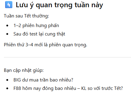 - Dòng tiền kỹ thuật hồi phục trước Tết giúp giảm rủi ro điều chỉnh.